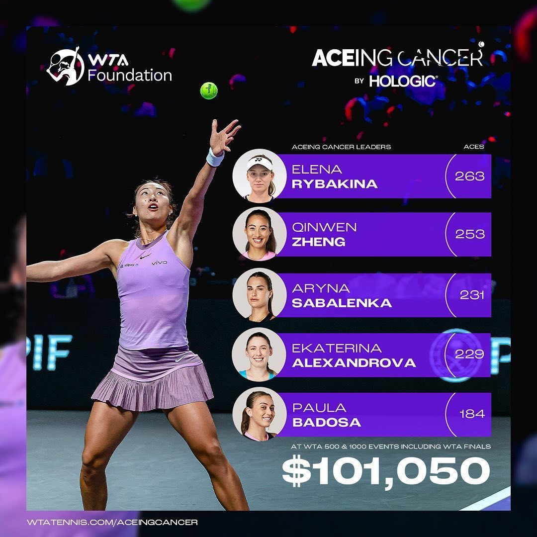 雷速体育12月4日讯 根据WTA官方消息,中国网球选手郑钦文2024赛季轰出253记ACE球,位列ACE榜单第二。