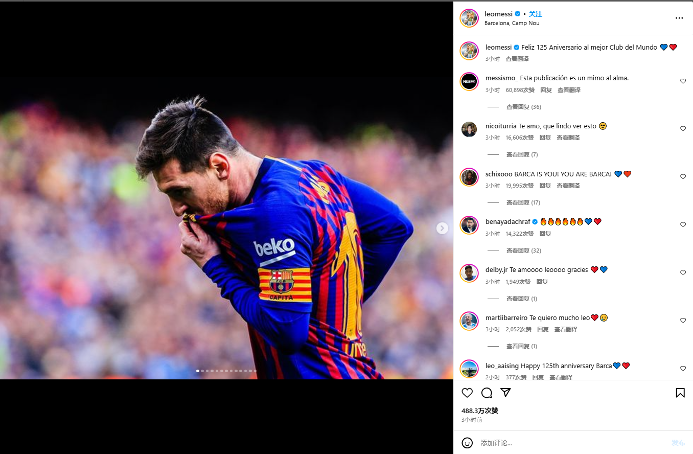 雷速体育11月30日讯 2024年11月29日是巴塞罗那建队的125周年纪念日,梅西在社媒上也发文对前东家表示了祝贺。