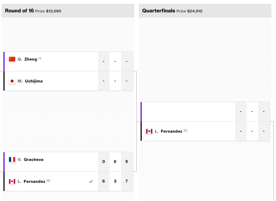 若能晋级八强,郑钦文将再战费尔南德斯。在武汉公开赛女单第三轮比赛中,郑钦文通过三盘鏖战击败了费尔南德斯。