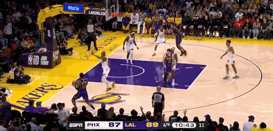 易边再战,拉塞尔罚球率先得分,杜兰特上篮回应,詹姆斯连续两次助攻里夫斯命中三分,瞬间追到只差3分。詹姆斯随后也命中个人第一记三分,两队紧咬比分,浓眉两罚全中,湖人终于完成反超。布克和杜兰特接连得分止住颓势,两队得分交替上升,随后陷入混战,湖人连续进攻不中,琼斯连得5分,太阳81-74领先。暂停回来,詹姆斯和浓眉连得5分,文森特命中三分,湖人轰出一波8-0反超打停太阳。莫里斯暂停后两罚全中,努尔基奇压哨不中,三节结束湖人87-85反超。
