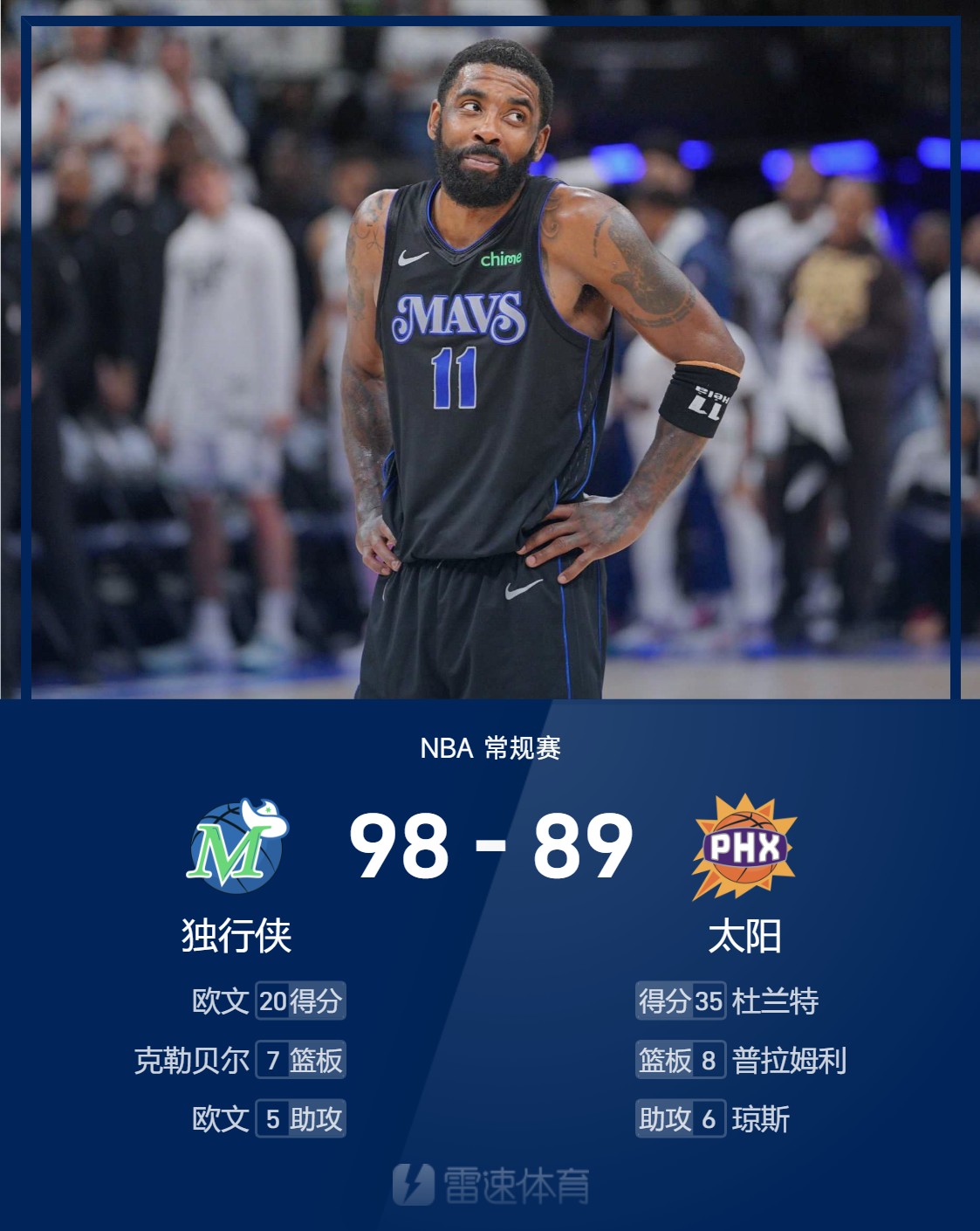 7.独行侠98-89太阳:欧文20分,杜兰特35分