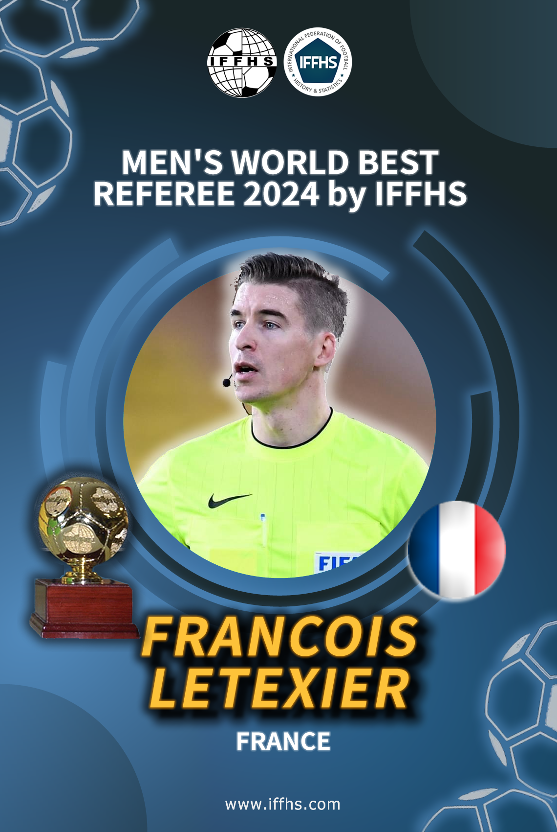 雷速体育12月26日讯,IFFHS(国际足球历史和统计联合会)评选2024年最佳裁判,法国人弗朗索瓦-莱特西耶获得年度最佳裁判称号。今年7月,莱特西耶执法了西班牙与英格兰之间的欧洲杯决赛。中国裁判马宁虽然入选了候选名单,但并未进入前十位。
