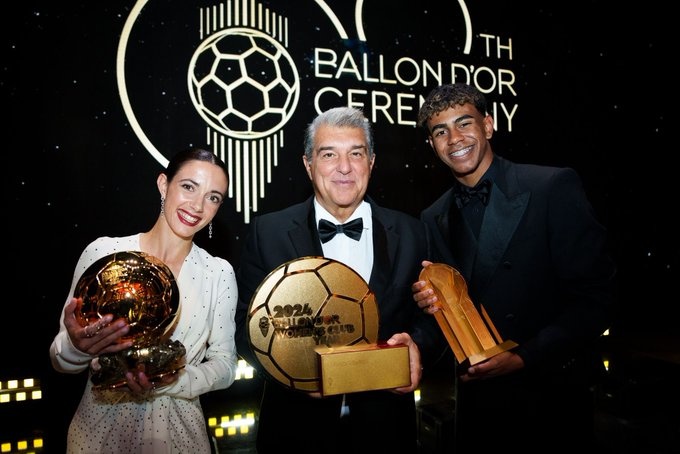 10月31日讯2024年金球奖颁奖典礼结束,巴萨球员亚马尔获得科帕奖,邦马蒂获得女足金球奖。《世界体育报》透露,亚马尔向邦马蒂询问有关金球奖的问题。